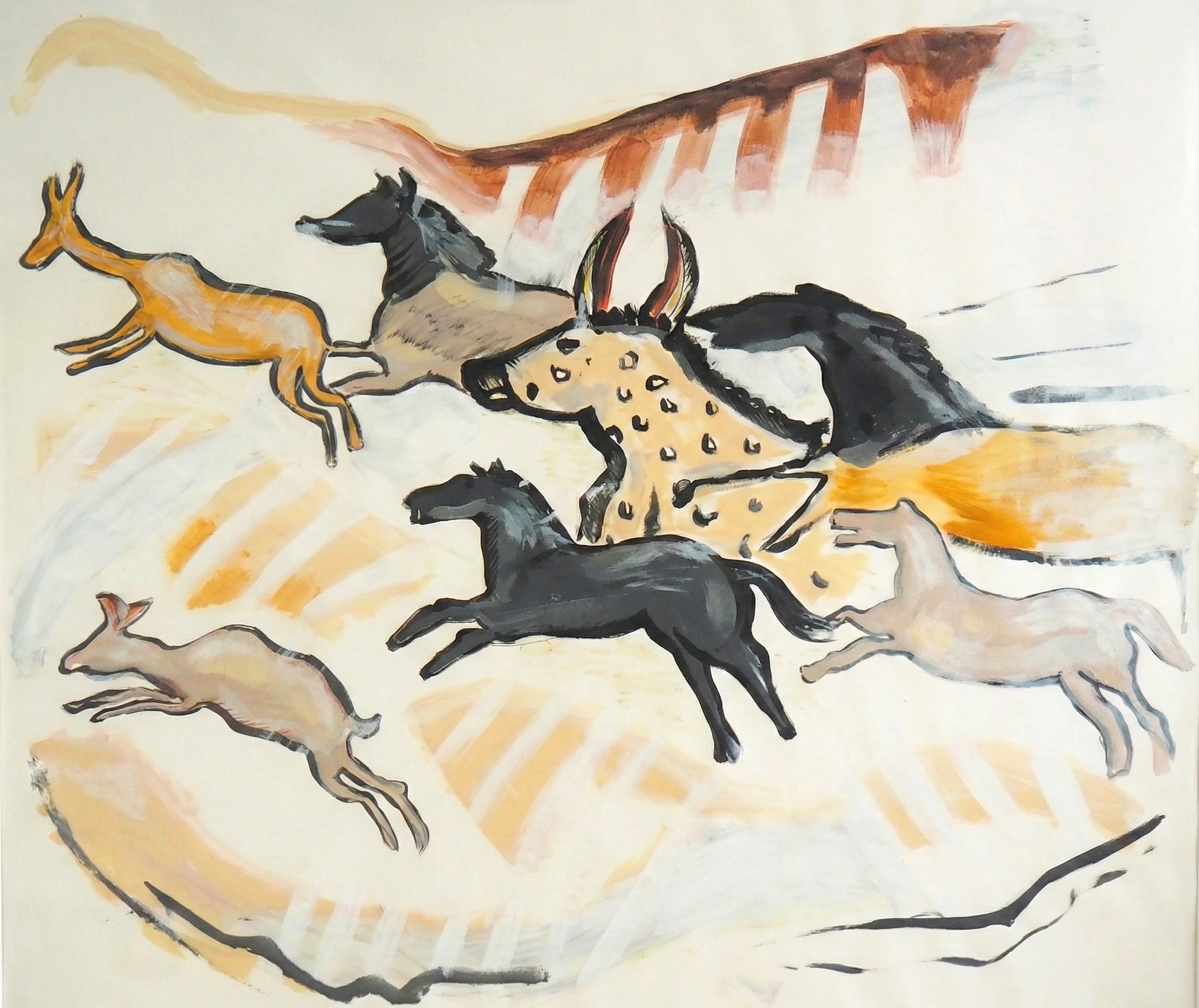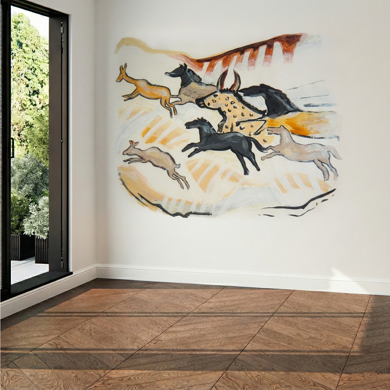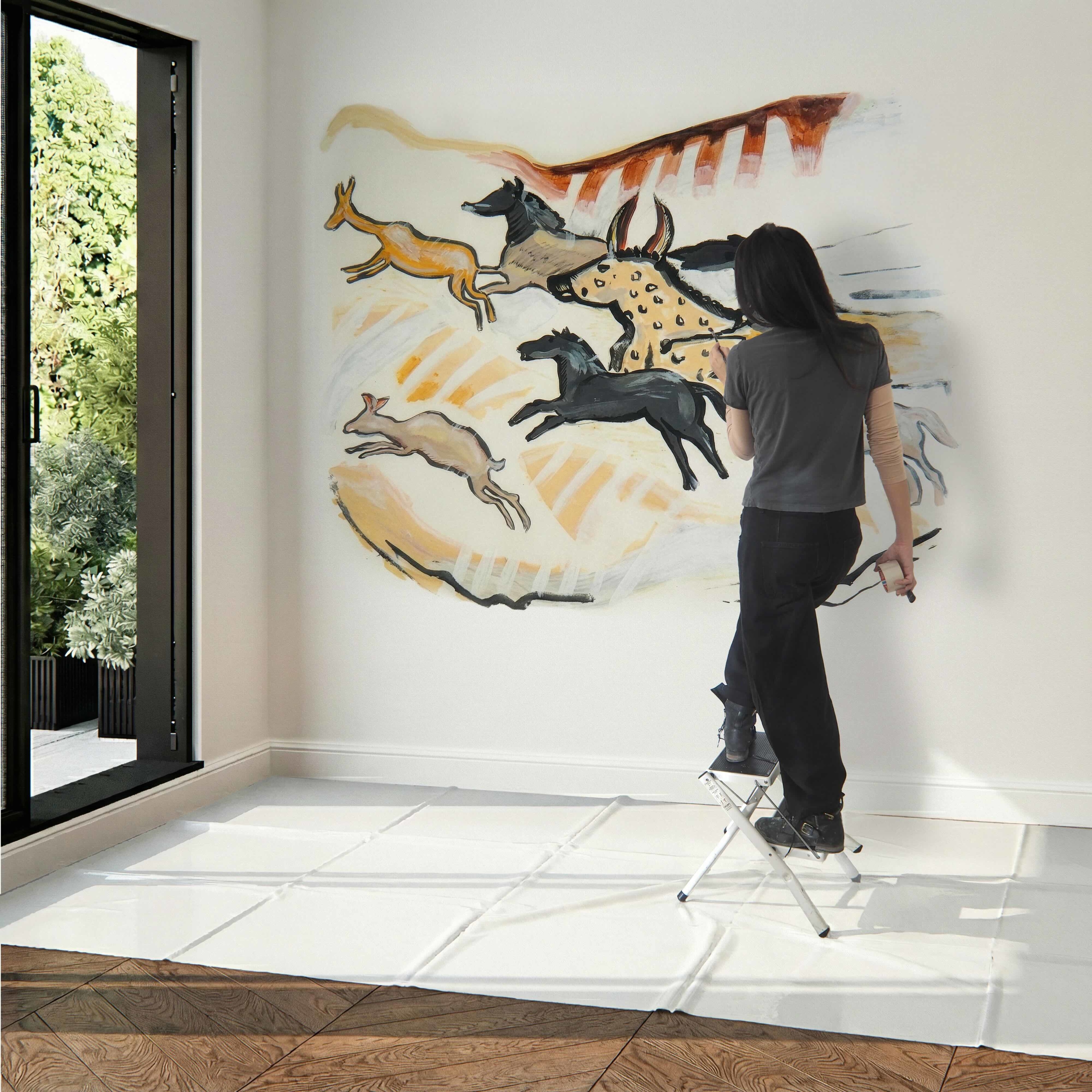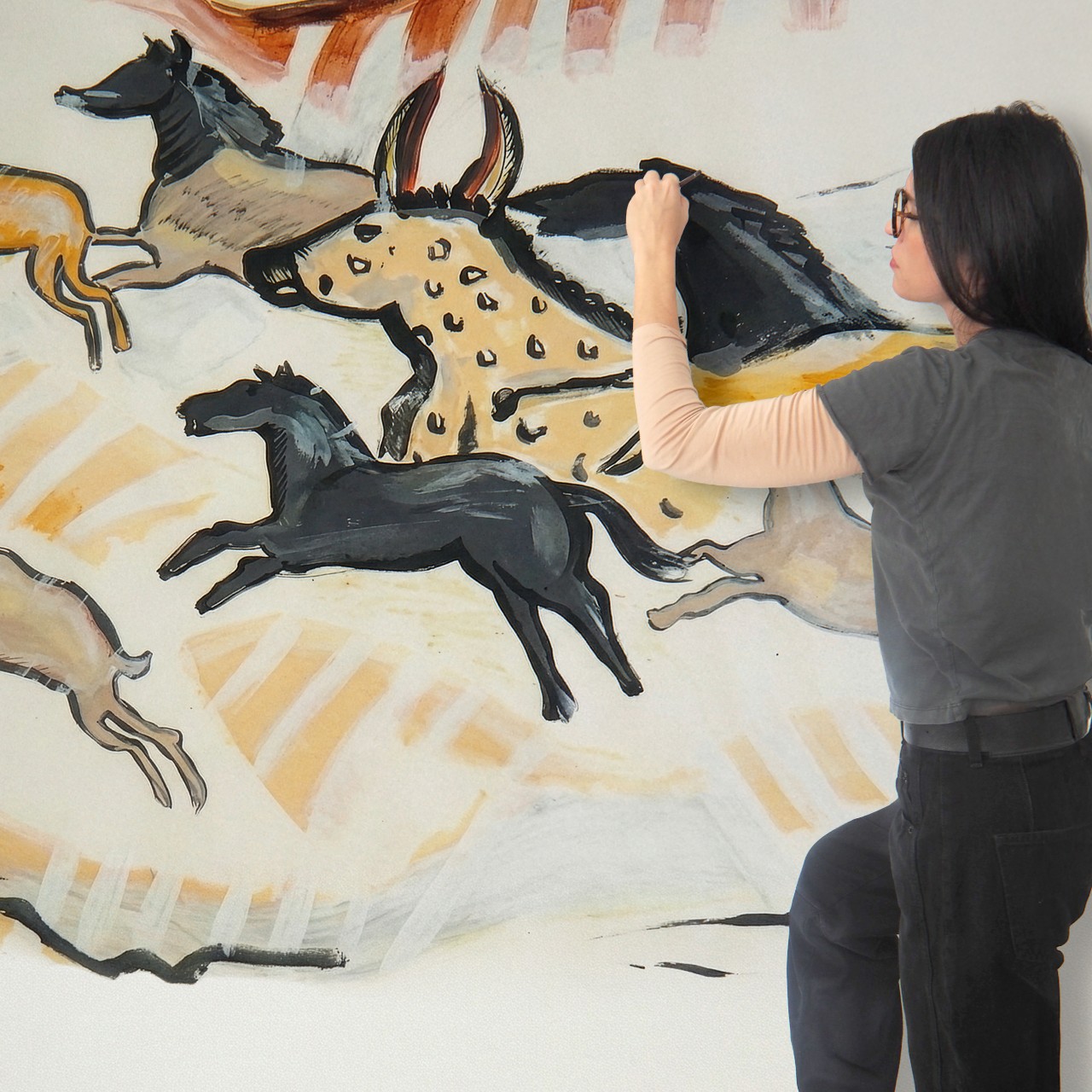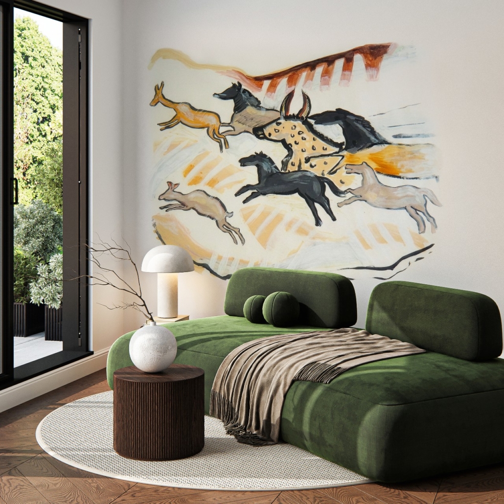 Depuis l’enfance, je suis profondément marqué par l’art pariétal paléolithique, et en particulier par les peintures de la grotte de Lascaux. J’avais le désir d’en faire entrer l’esprit dans mon intérieur, à travers une œuvre fidèle aux formes et aux couleurs originelles, mais réinterprétée de manière contemporaine.